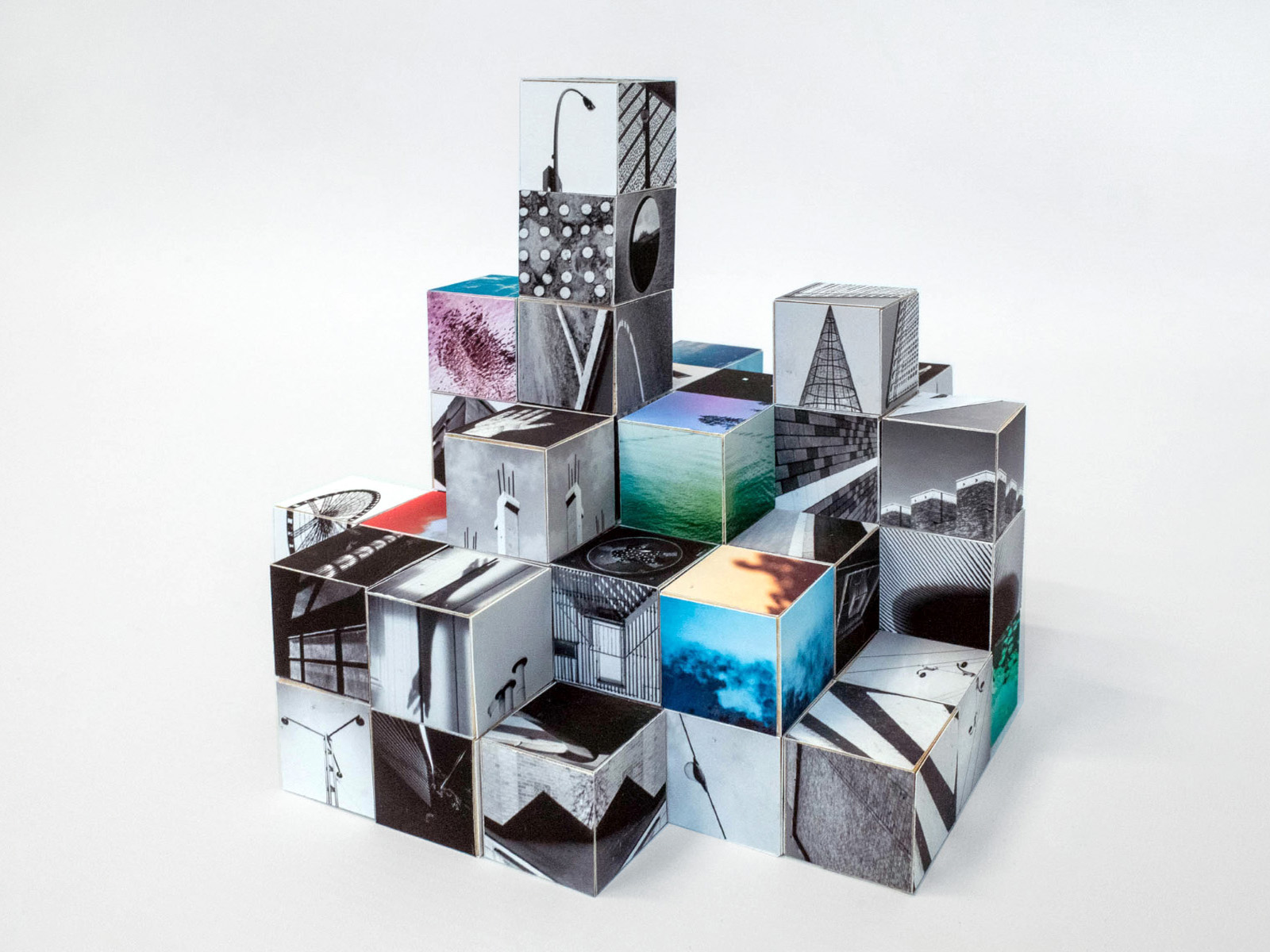 With Multropolis, Dora Lionstone and Benny van der Plank construct a multifaceted environment out of building blocks that changes with every new setup and depends on the viewer's subjective perspective. The installation consists of more than 300 images mounted on over 50 hand made cubes, arranged into a structure of 2,7 x 2,7 x 2,1 meters.